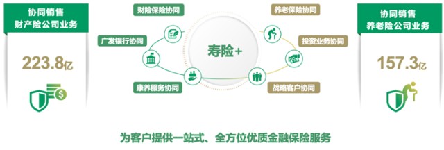 具体来看,2022年,国寿寿险协同销售财险业务实现保费223.83亿元,保单件数同比增长9%;协同销售养老企业年金业务新增首年到账规模及养老保障业务规模157.29亿元;广发银行代理国寿寿险银保首年期交保费收入实现平稳发展;积极探索保险与投资业务协同,深化与资管子公司等成员单位合作,在投资项目推介、联合客户开拓等方面紧密联动,创新投资互动新模式。