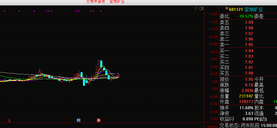目前铁矿石价格在稳步的上涨中,这个对于铁矿石企业将会是一个重磅级利好,因此散人计划8下方上船,损在7.5,赢在9上方。(备注:宝地矿业比河钢资源估计贵了40—50%,因此只做短线,别考虑什么长线。)