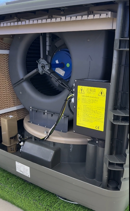 以澳蓝AZL18-ZS31B为例,最大送风量18000m³/h,功率1.1KW,一般能对80~120m2的场所进行通风降温。