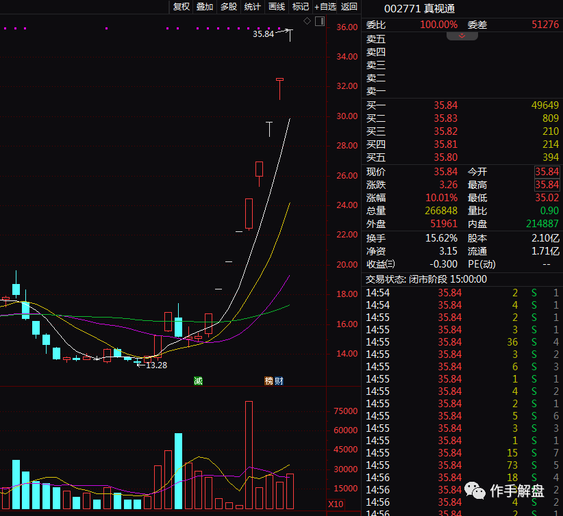 而小弟们那更是一个比一个顽强,除真视通受影响短暂开板之外,龙洲股份,宁波高发这些补涨的小弟丝毫没受影响,稳如泰山。