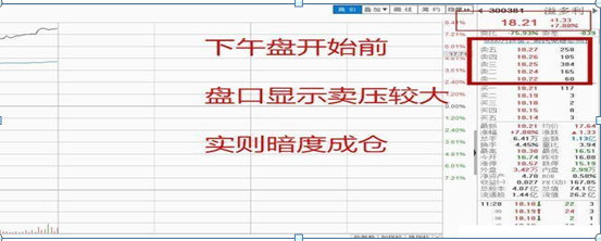 神秘的盘口语很多时候,大资金时常利用盘口挂单技巧,引诱大家做出错误的买卖决定,委买卖盘常失去原有意义,例如有时刻意挂出大的卖盘动摇持股者的信心,但股价反而上涨,充分显示主力刻意示弱、欲盖弥彰的意图。