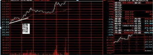 3、主力会使用巨阴做一个断头铡刀,跌破趋势线。洗盘和出货的不同在于,出货的跌破趋势线之前,一定要放量,因为出货出货,必须出这个货才行,那么出货就必须见量。而洗盘不是,突然跌破趋势线之前没有出货的迹象。