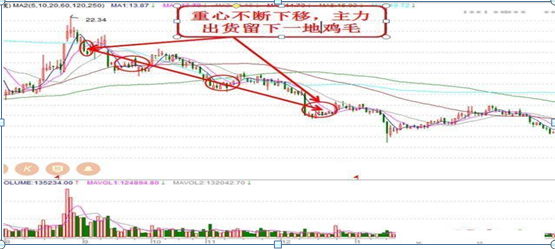 三、重心方面的区别:重心是否下移,是判别洗盘与出货的标志
