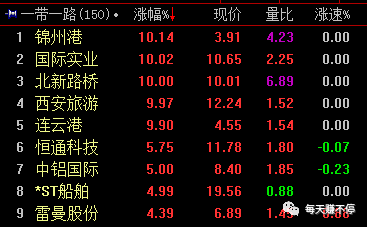 国际实业现在的高度板,是一带一路这条线的龙头,助攻品种很多的,周一也存在再度转强的可能,港口,雄安等方向表现强势,华电重工T字板,周末公告集团资产注入预期,周一大概率要一字加速机会。周四提示大资金介入的秦港股份换手连板,日内龙头是大连重工低位首板,叠加雄安+高端装备+曹妃甸+股权交易中心,如果龙头加速这个可以关注换手板的机会。
