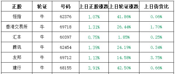 认沽证方面,吉利汽车昨日收盘下跌1.53%,有191万港元流出其认沽证套现,腾讯昨日则收涨,有180万港元流出其认沽证止损。建行昨日大涨3.91%,反手博回调的资金可能需要谨慎些。