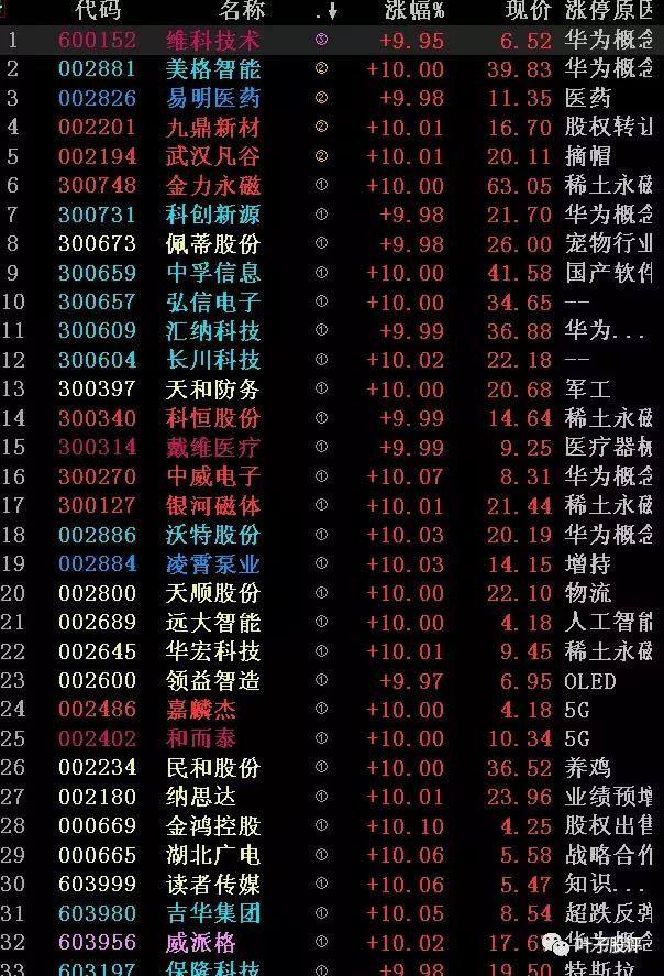 市场高度 涨停个股;