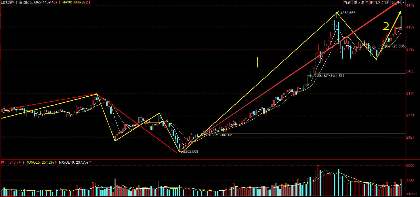 市场整体依然是震荡的,但主线品种会脱颖而出,比如白酒板块已经说两个多星期了,天天说,我自己都有点嫌烦了,但是它依然没涨完,大家一定要从纷繁中找出确定性的主线才能赚到钱,白酒上涨所需的结构破个高就完成了,接下来就看是震荡还是延续。
