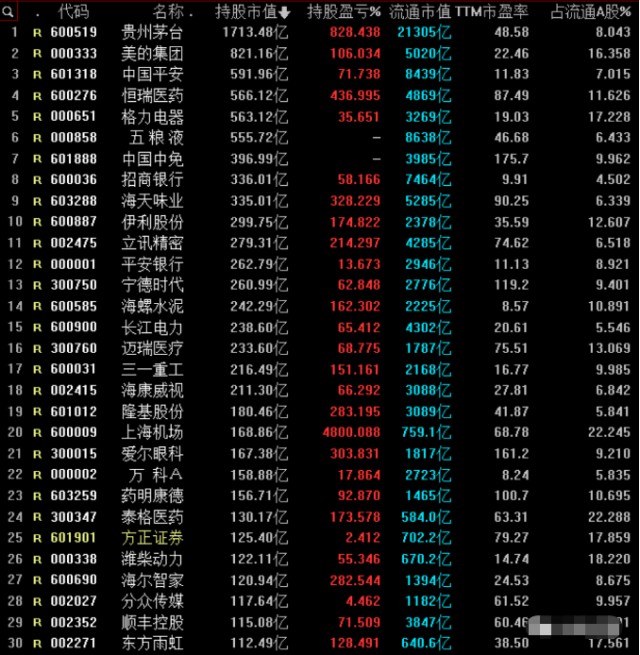 但是在前期老柯也给大家聊过,在美的集团今年优势尽显以前,我一直都是更喜欢美的的(现在也是),但是从投资的角度来说,在当下,今年面对危机的格力电器可能长期来看性价比会更高,格力电器中报94%的股利支付率(2%的股息率)+最新公告已经累计回购52亿元,对股东的回报也好、后续对员工的激励也好,也都在明显改善。北上资金合计持股市值前30