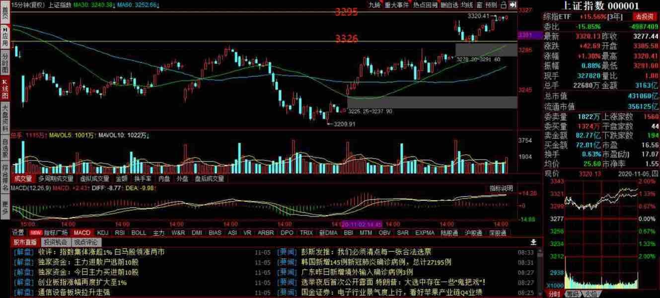 感谢各位粉丝的关注,咱们这几天也挺幸运的,10月中旬的逃顶,开始分高做空,到上周二的抄底做震荡格局,再到这两天的震荡上行逢低做多,整体趋势把握我看还行,如果各位股友不会看趋势的话可以关注我,每天上午开盘前会发出今天整体的操作策略,接下来说一下今天的操作,昨天我是留的300多单过夜的,今天上午也是开盘拉升的话就分批出货了,留20%的仓位去搏做后的收益,整体趋势还是震荡上行的格局,逢低做多的操作方法(具体多少是多,可以加小伙旁边的非中文字符)盘中在分析,目前大盘箱体点位是3295--3326点,50ETF箱体点位是3.398--3.427,300ETF箱体点位是4.909-4.963,这里箱体上边缘的压力位是在8月31日出现的高点,目前来看还是 还是逢低做多的格局,关注我,股市行情不迷路