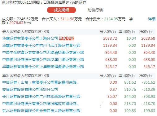 京蓝科技:12.7日华鑫上海分公司净买入2000万排名第一,杭州云飞江路营业部净买入1100万排名第二,无锡清扬路营业部净买入860万排名第三。超跌反弹个股,持续性不会很强。