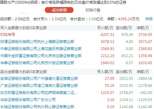 国联水产:机构净买入3700万排名第一,杭州上塘路营业部净买入3000万、上海花园石桥路营业部净买入2500万排名第三。游资继续持续流入,近期经过高位震荡后资金承接比较充分,今日换手率高达20%,其短期爆发性比较足。