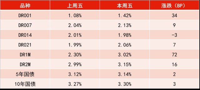 资金利率一览: