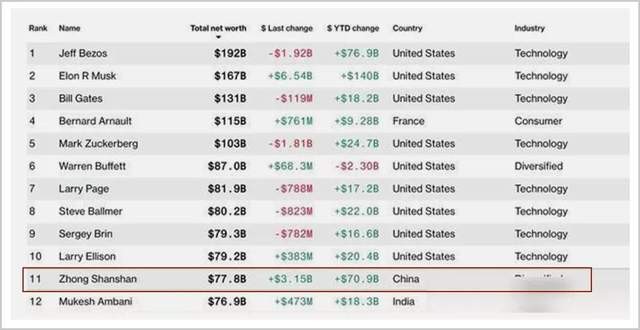 据彭博亿万富翁指数,2020年的最后一天,农夫山泉上市时做了半小时首富的钟睒睒,再次成为了中国首富,并以778亿美元身家超越印度信实工业集团董事长穆克什安巴尼(Mukesh Ambani),同时坐上了亚洲首富的高位。