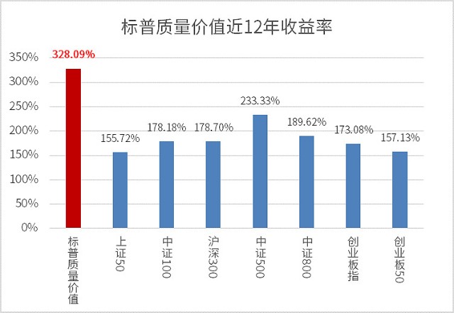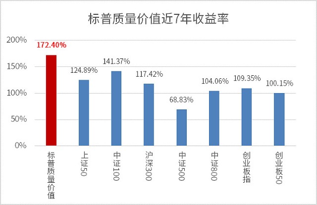 标普中国A股质量价值指数较A股主流宽基指数历史收益率对比