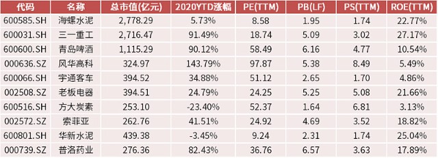 标普中国A股质量价值指数前十大成份股依次为:美的集团、云南白药、海螺水泥、三七互娱、青岛啤酒、扬农化工、老板电器、利欧股份、顾家家居、圣农发展。