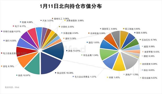 值得注意的是,1月11日,A股有较大幅度下跌。北向资金对个别板块进行了低吸操作,如国防军工、农林牧渔。