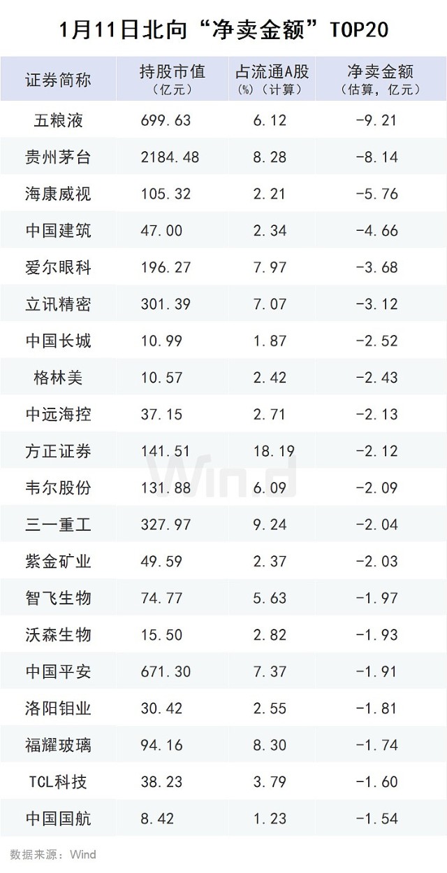 1月11日,北向资金流向反复、纠结,全天几番逆转。