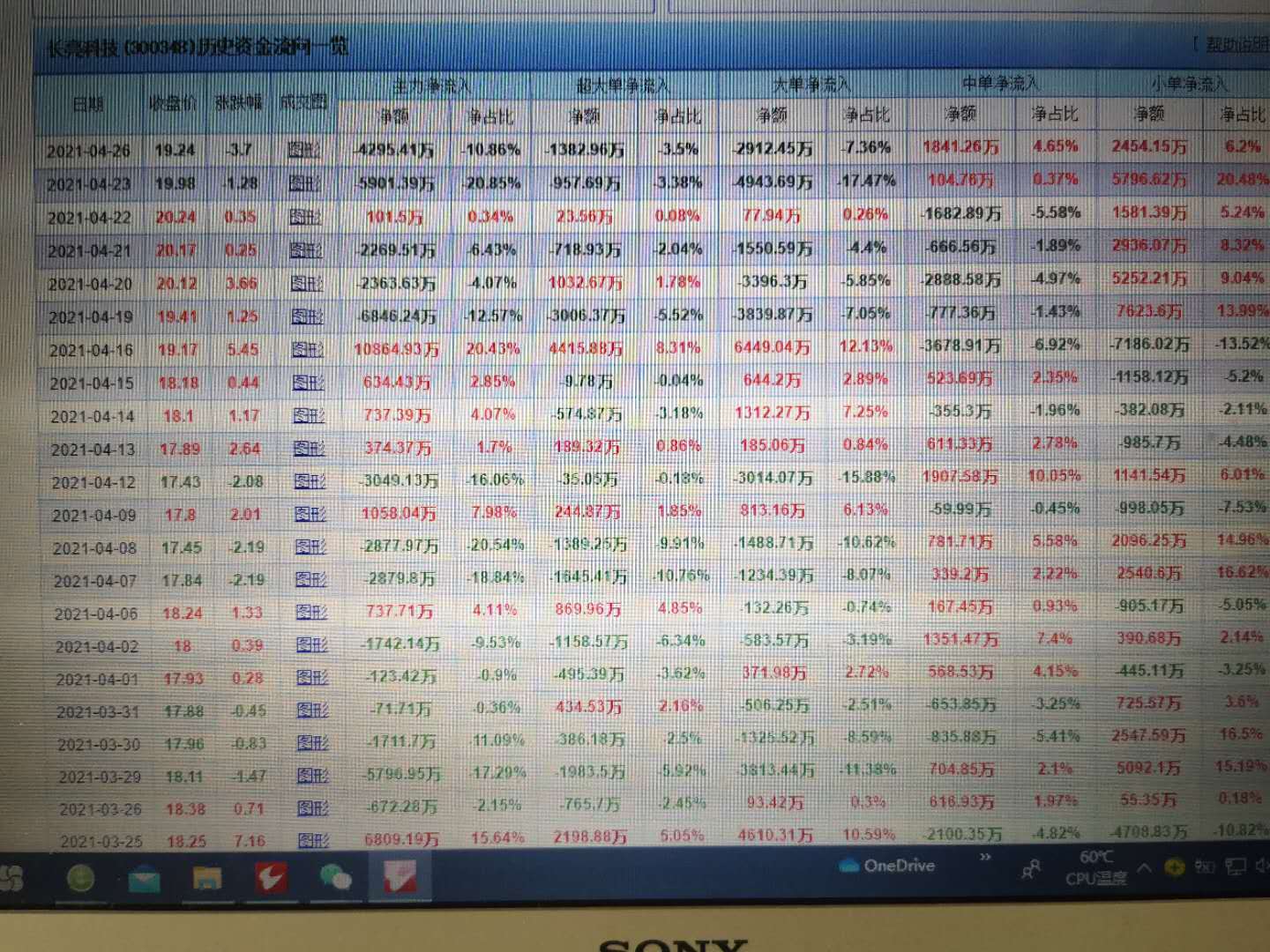 长亮科技(300348)历史资金流向一览