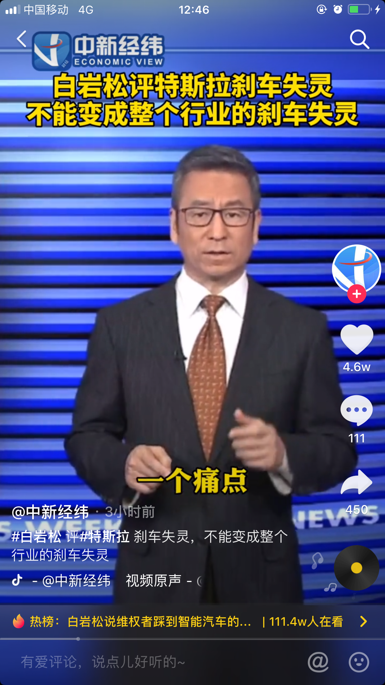 央视#白岩松 评#特斯拉 刹车失灵 #智能汽车行业
