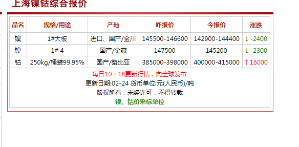 钴上涨16000元