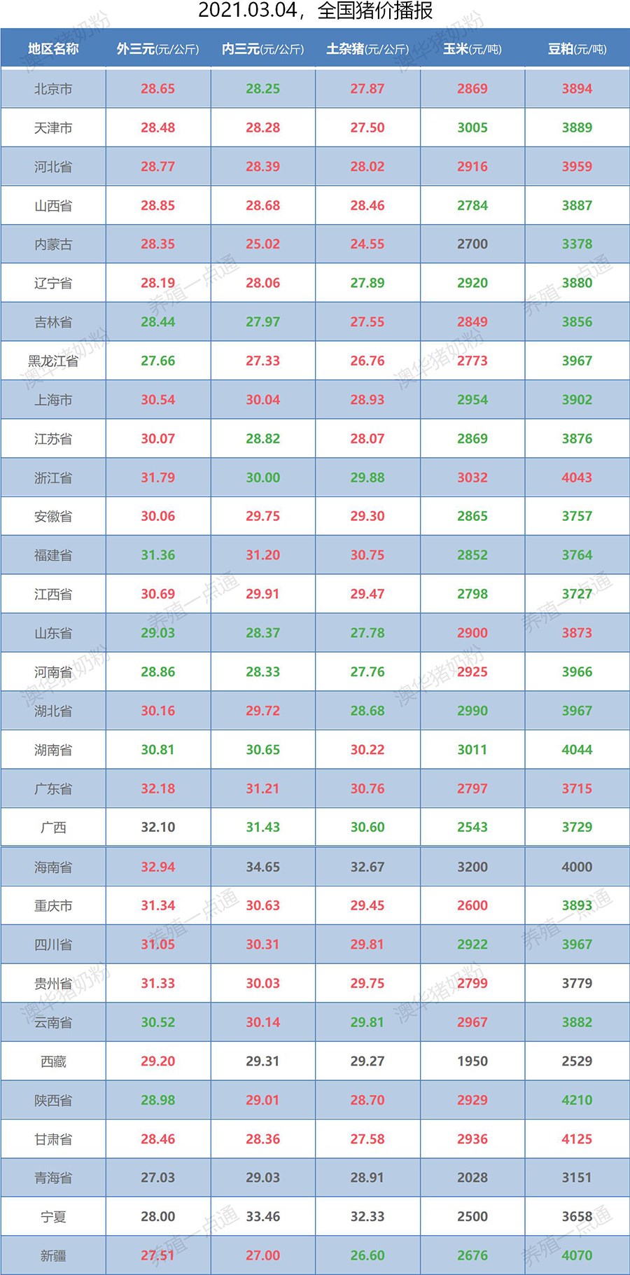 2021.03.04,全国生猪价格播报