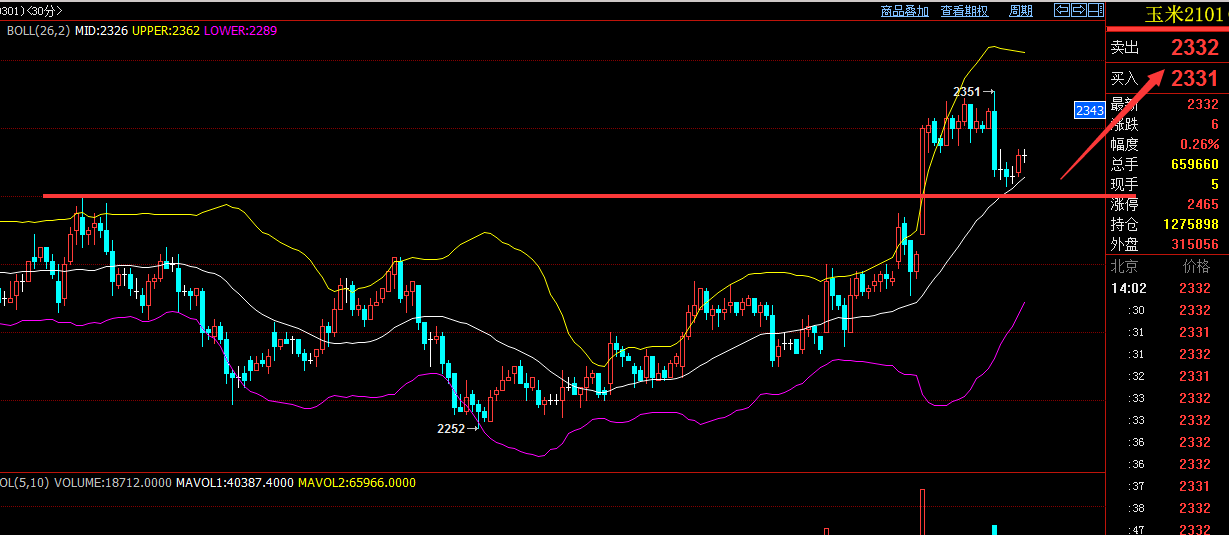 玉米2101建议策略:玉米日内激进的可以直接2320一线偏多布局,稳健的可以2300一线,目标2350-2370,止损25个点