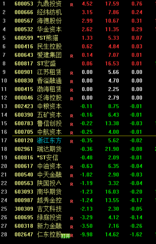 不管仁东控股涨停还是跌停,浙江东方永远排名中下位