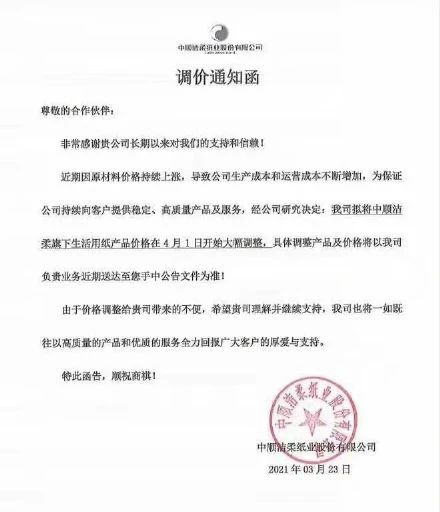 生活用纸上调10%到20%,看看岳阳林纸大概率高开,钢铁后的风口