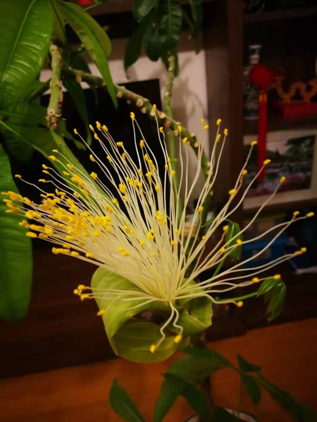 今晚发财树-难得开花啦!哈哈-股友欣赏一下吧!
