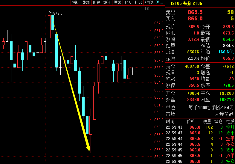 铁矿石870-72区域空单,已到855止盈点位