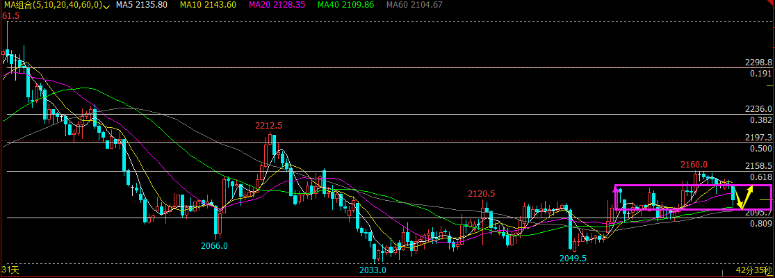 焦炭早盘大幅回调,跟进了空单的朋友先止盈出来,在跌破2130后能够操作多单的点位已经下移到2110,目前小周期走势还是震荡偏空,后市操作1909合约2110-2138区间操作,2001可以2180-2147区间操作。