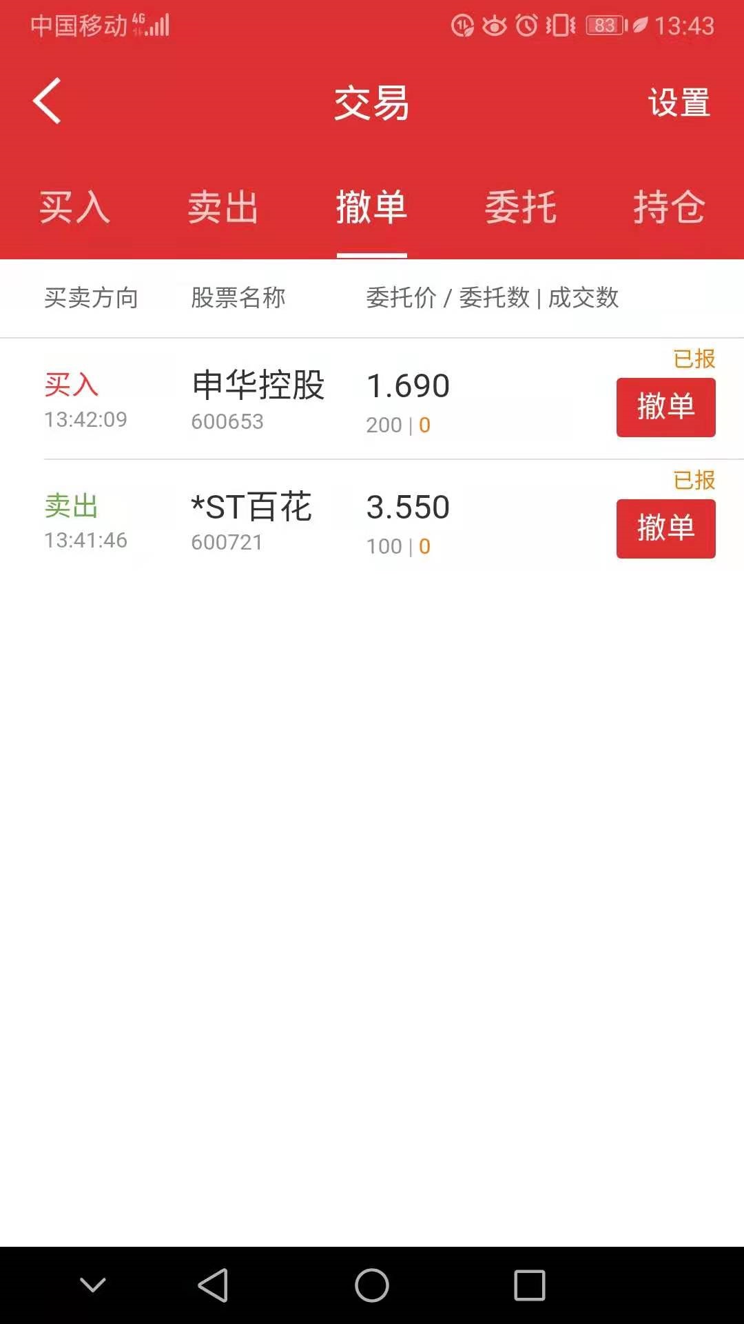 今天卖出百花村,一换二,买入申华控股