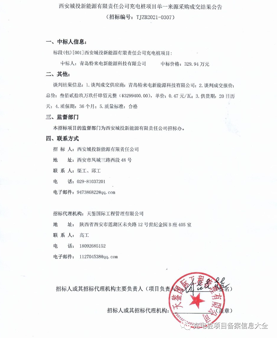西安城投新能源充电桩采购项目