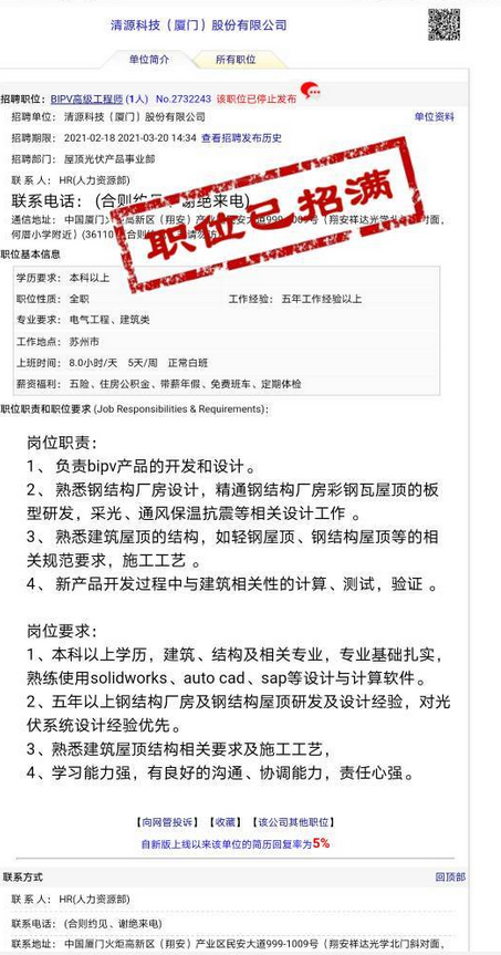 清源股份在招聘bipv工程师