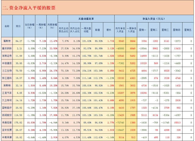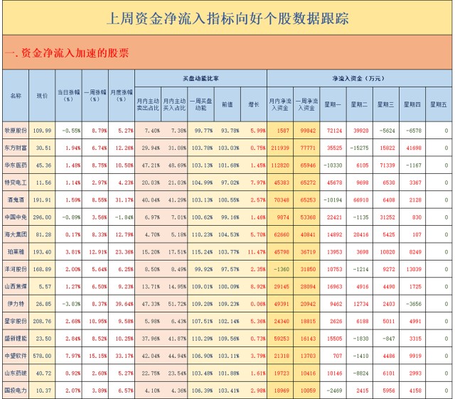 上周资金净流入指标向好个股数据跟踪(2021.04.22)