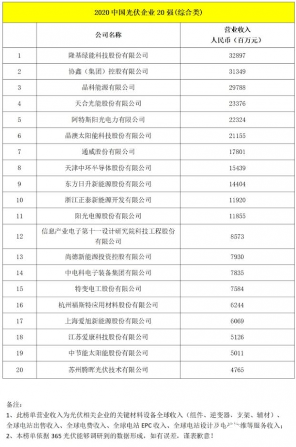 2020年中国光伏企业20强榜