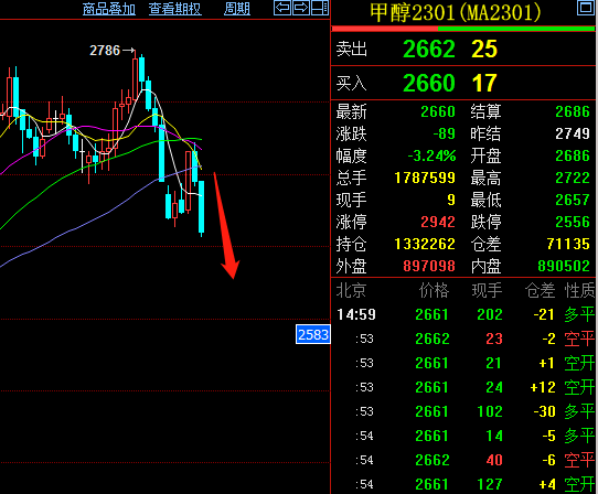 甲醇2301:甲醇从盘面形态来看,趋势还是偏弱,晚盘还没有入场激进朋友开