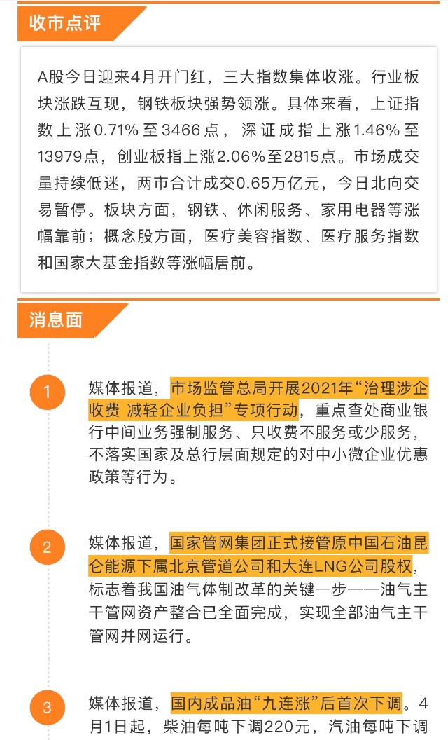 收市点评4.1 A股迎来4月开门红,钢铁板块强势领涨