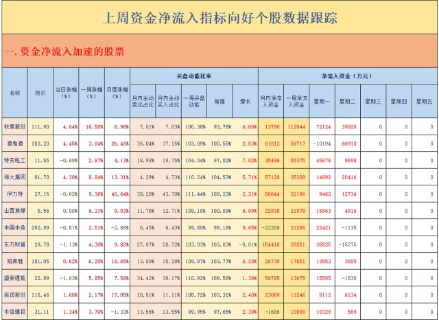 上周资金净流入指标向好个股数据跟踪(2021.04.20)