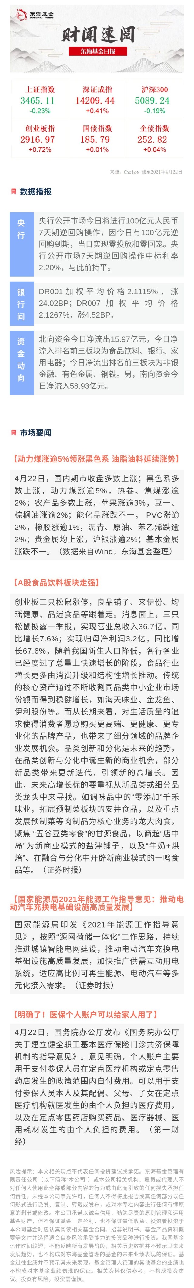 A股食品饮料板块走强 东海基金日报4月22日