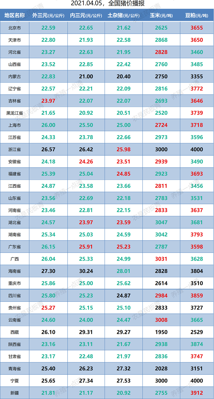2021.04.05,全国生猪价格播报
