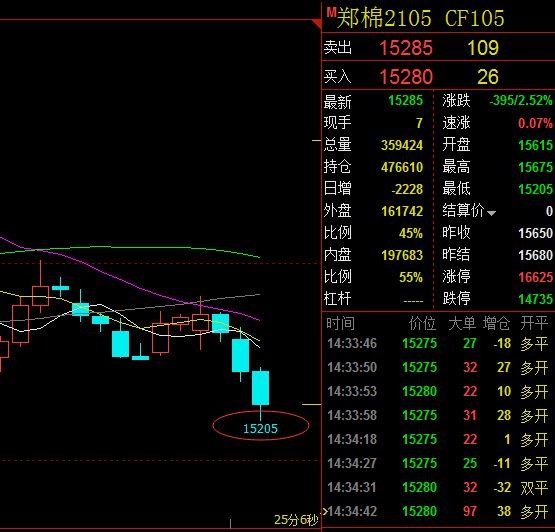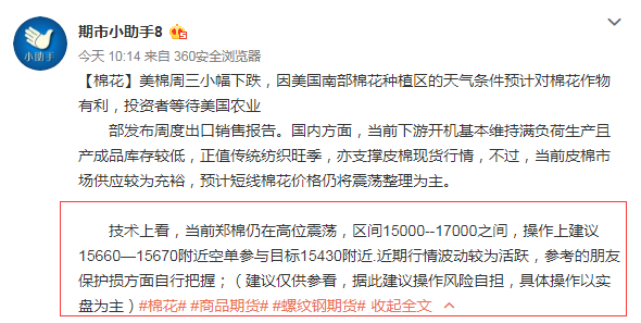早间棉花我们在15660空单参与,现已获利230个点!