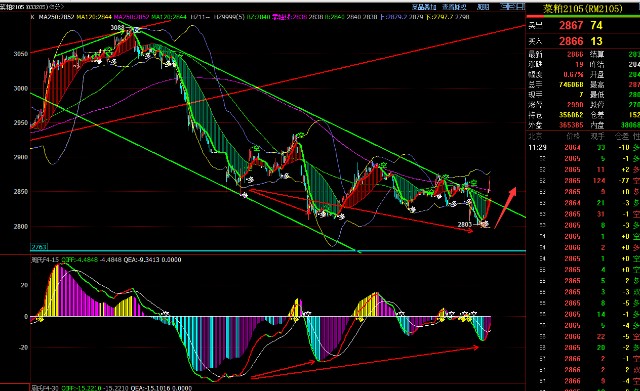 菜粕5分钟级别跌破2809 杀出2次底背离 波段空头趋势结束 3月5日实盘