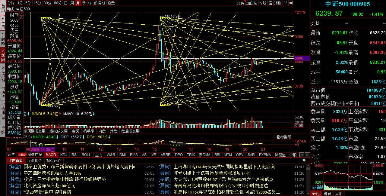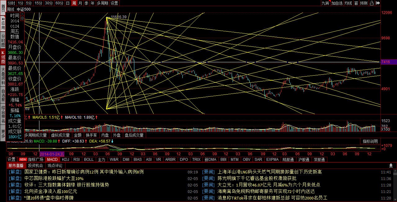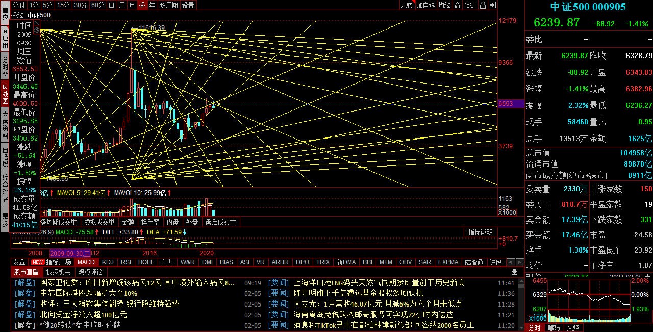 看中证500日线周线月线空头走势还将延续,季线支撑线也会击穿