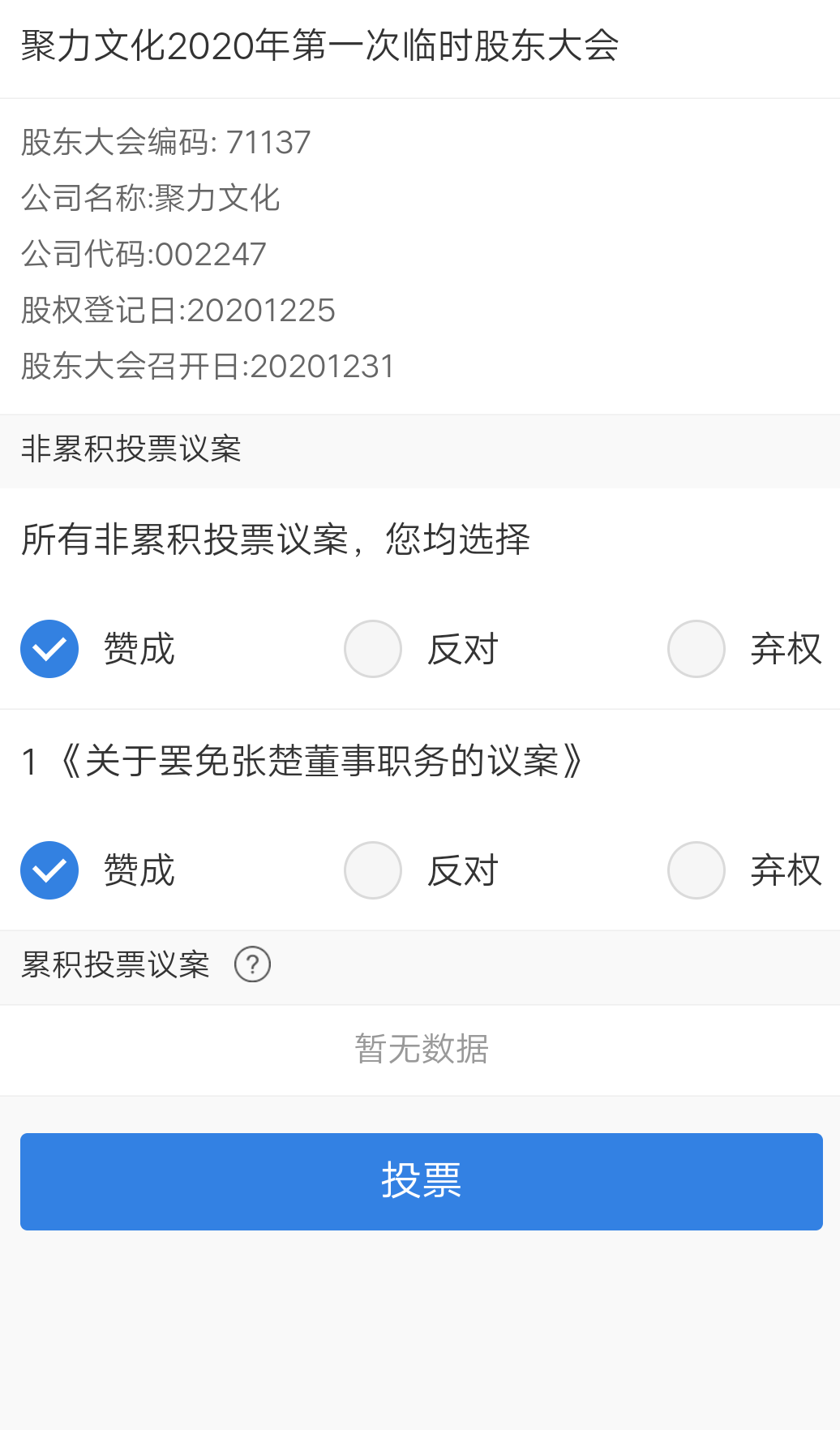 已投,赞成票
