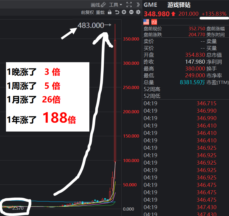 GME 已涨188倍【100%把康泰医学308 踩在脚下】