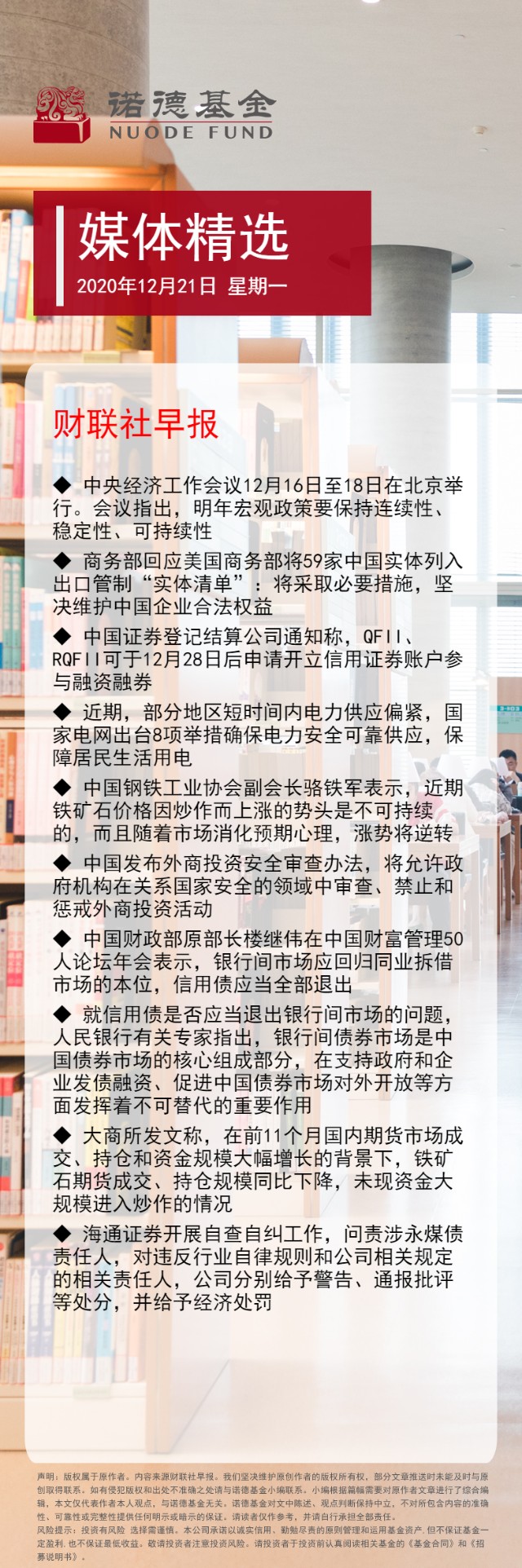 诺德基金媒体精选:一图掌握市场要闻(2020.12.21)