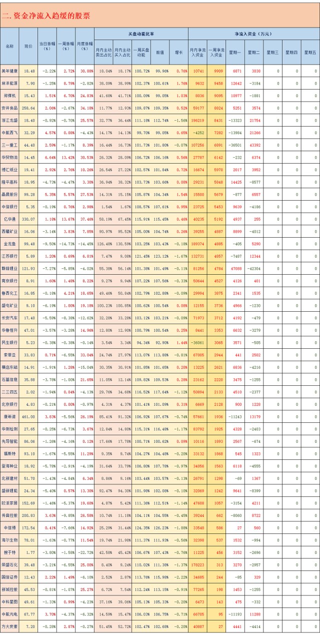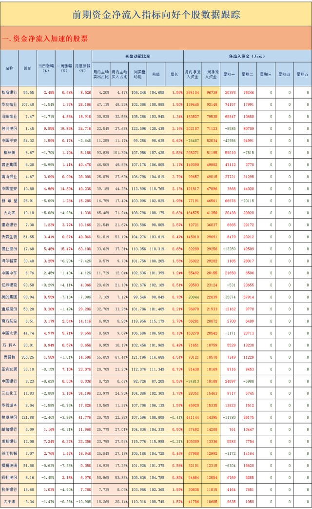前期资金净流入指标向好个股数据跟踪(2021.02.23)