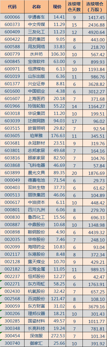 北向资金连续6日以上增仓个股名单(截止4.26)