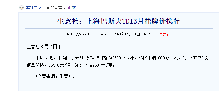 一一一TDI价格快报,3月1日涨价10000一吨